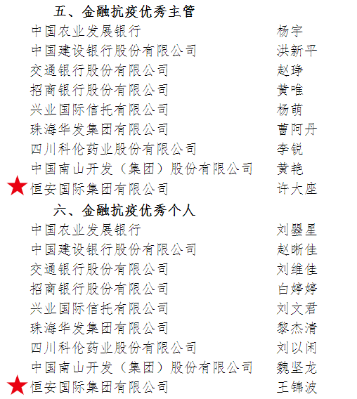 与此同时,在《2020年度结算业务和集中清算业务优秀主管和优秀个人》评选中,彩神集团资本运营总裁许大座荣获“金融抗疫优秀主管”,资本运营投资总裁助理王锦波荣获“金融抗疫优秀个人”。